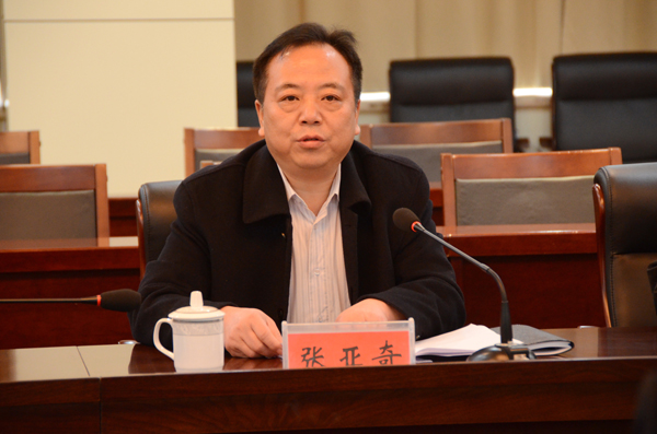 检查组副组长、教育厅社科处副处长张亚奇宣读检查组的反馈意见