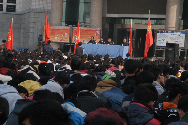 为增强我校师生的安全防范意识,预防和减少事故、案件的发生,11月18日中午,我校在零号楼前致远广场举办安全知识讲座,邀请洪门警务大队窦永广警官为我校师生进行安全知识讲解。全校10000余名师生参加了培训。