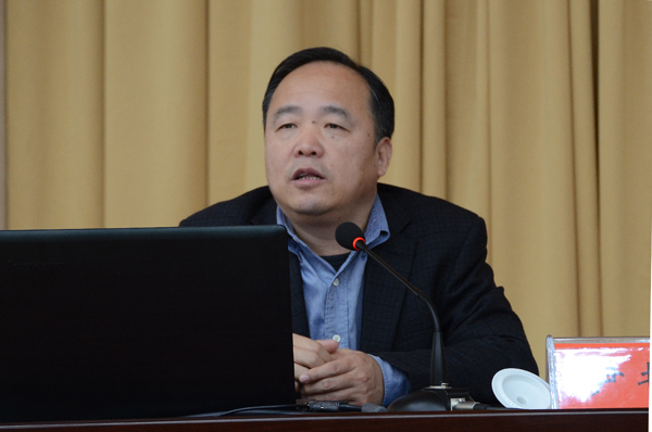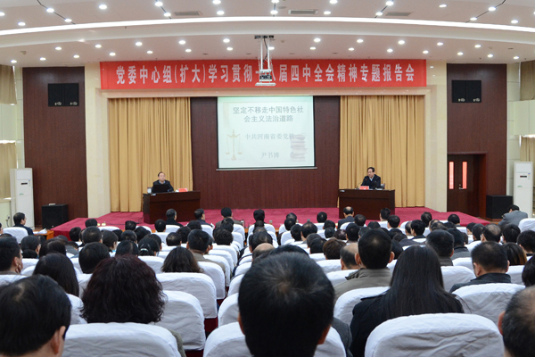 中共河南省委党校副校长尹书博作题为《坚定不移走中国特色社会主义法治道路》的辅导报告