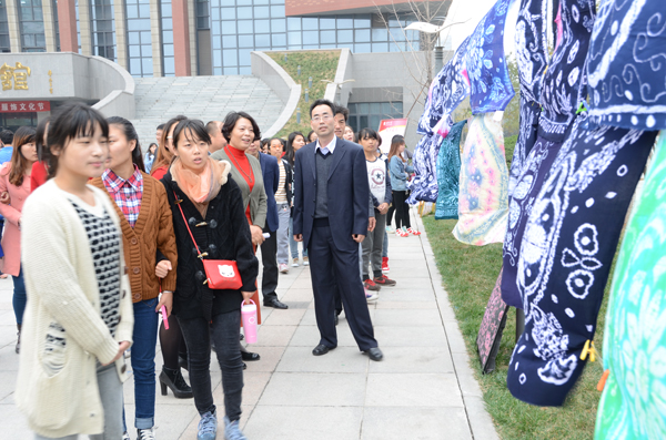 开幕式结束后,与会领导、嘉宾和广大师生参观了纤维艺术作品展、扎染艺术作品展和服装设计作品展。