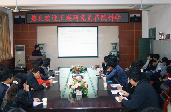 王瑛研究员在报告中对药用植物淫羊藿的分类、药用价值、药效成分、资源收集评价、主要活性物质的基因调控分子机理以及育种的方法途径进行了详细介绍,还就药用植物资源开发利用途径及学生考研等方面的问题与参会师生进行了交流讨论。王瑛研究员的报告内容丰富、图文并茂,使参会师生开阔了眼界,加深了对淫羊藿等药用植物资源的知识的认识。