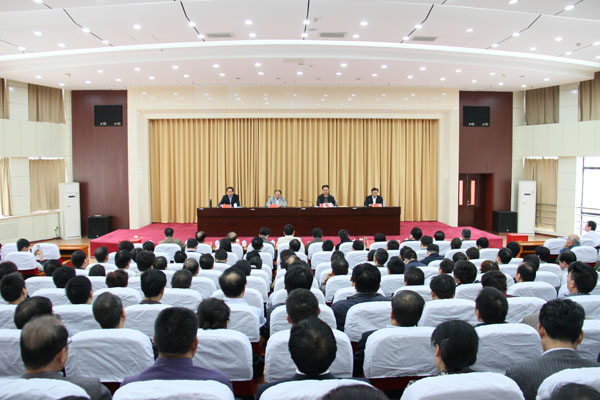 9月30日下午,我校在办公楼三楼多功能报告厅召开党的群众路线教育实践活动第三环节群众评判会议。省委第十八督导组组长、省社科联党组书记何白鸥,省委第十八督导组副组长、省委老干部局副巡视员刘进周,省委第十八督导组成员郝金超、刘振海、高歌、腾飞出席会议,全体校领导,学校中层正职和中层副职代表,普通教师代表,高层次人才代表,省(市)级以上党代表、人大代表、政协委员,党外人士,工勤人员代表,离退休人员代表,学生党员代表和普通学生代表等200人参加了会议。