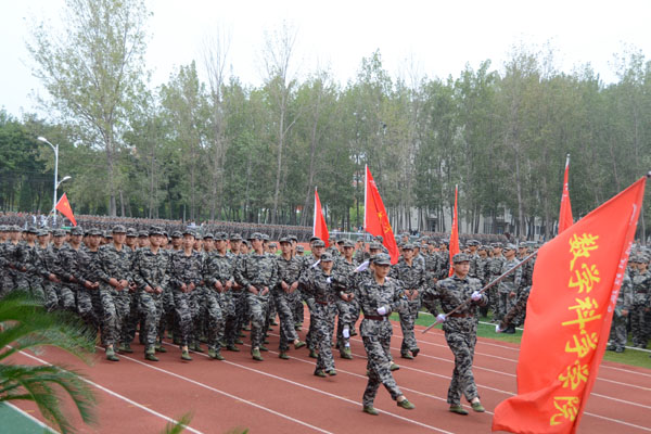 2014级新生军训汇报表演暨总结表彰大会在激昂的校歌声中圆满结束。