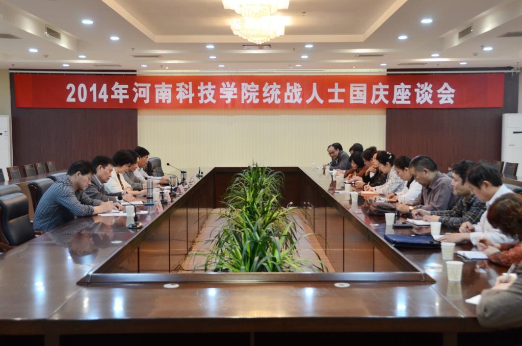 9月28日下午,我校在办公楼206会议室召开了2014年统战人士国庆座谈会。校党委副书记、工会主席张玉珍出席座谈会。党委办公室、党委组织部、党委宣传部主要负责人,在校的各级政协委员、各民主党派负责人、无党派人士代表、少数民族教工代表、出国留学归国人员代表等统战人士代表共20余人参加了座谈会。会议由党委统战部部长刘慧英主持。