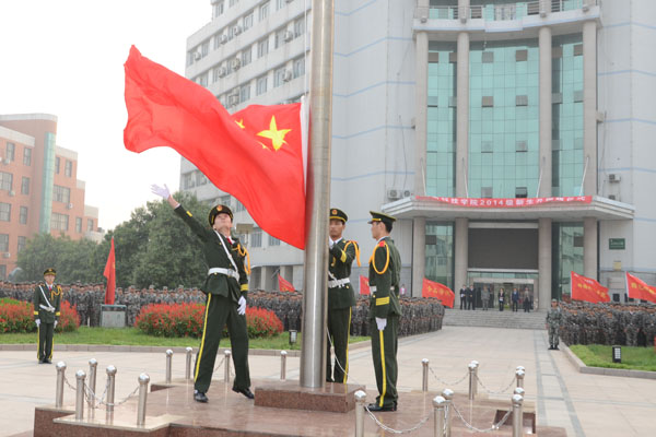 9月25日早上,沐浴着初秋清爽的晨风,我校在致远广场隆重举行了2014级新生升国旗仪式。校党委副书记张玉珍出席升旗仪式,军训团团长张朝阳,我校党委宣传部、学工部、武装部、校团委等相关单位负责人,帮训教官、各军训连指导员以及2014级新同学参加升旗仪式。