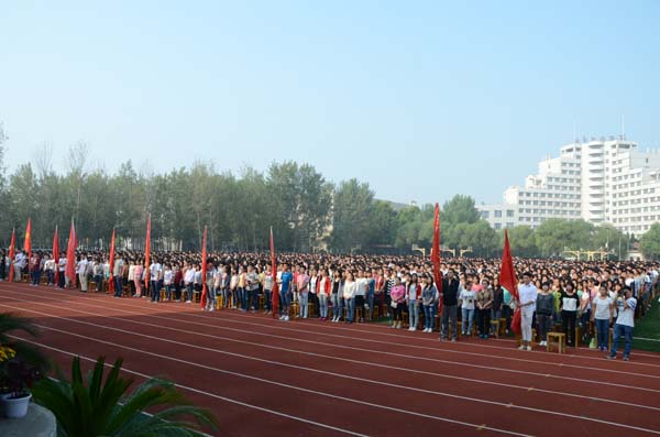 9月22日,秋高气爽、碧空如洗,我校2014级新生开学典礼在西区操场隆重举行。校领导牛书成、王清连、张玉珍、窦玉玺、冯启高、王舜书、苗双虎、杨松璋、宋亚伟出席开学典礼,相关职能部门、各学院党政负责人以及2014级7945名新同学参加了开学典礼。开学典礼由校长办公室主任郭秋平主持。