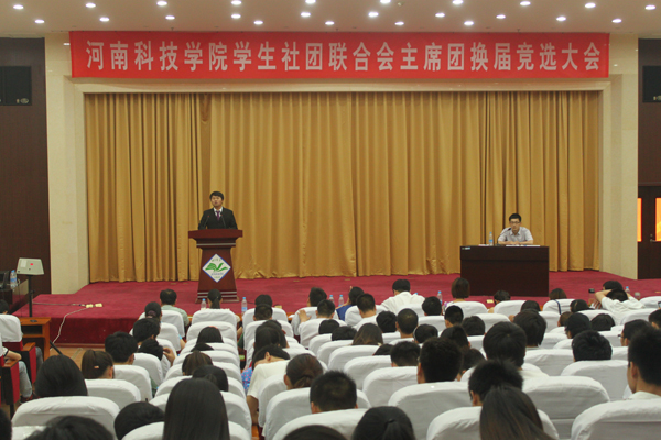 6月8日,我校学生会、学生社团联合会主席团2014年换届竞选大会在校办公楼三楼报告厅举行。校团委老师、各学院团委书记和学生代表300余人参加了会议。