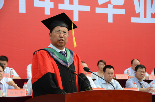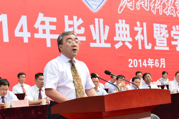 6月6日上午,我校在启智广场隆重举行2014届毕业生毕业典礼暨学士学位授予仪式。校领导牛书成、王清连、张玉珍、刘兴友、窦玉玺、冯启高、王舜书、苗双虎、宋亚伟出席了典礼。各职能部门负责人,各二级学院党政领导、辅导员和毕业生代表2000余人参加了典礼。