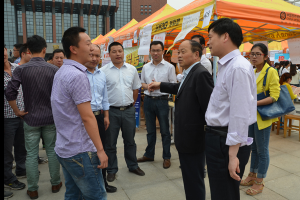 副校长窦玉玺在招生就业处和服装学院负责人的陪同下莅临现场进行指导,并与用人单位和前来应聘的毕业生进行了深入的交流,他希望各学院充分利用好就业创业政策和社会资源,为毕业生高质量就业提供全面优质服务,同时,要摸清就业市场对人才的需求情况,促进人才培养质量提升,有效推动“就业、培养、招生”三者良性互动。