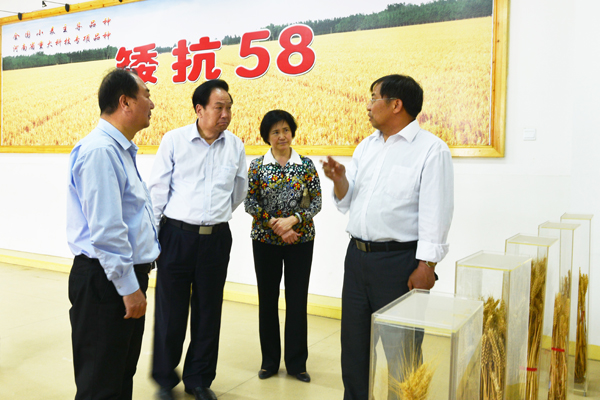 省委督导组领导来到小麦研究中心,参观了小麦研究中心基础实验室、小麦抗倒伏风洞实验室、智能温室等。在参观过程中,茹振钢教授详细介绍了我校小麦育种史、小麦科研团队建设、小麦实验基地建设、小麦研究发展方向等方面工作,并表示要在省委的关心指导下,继续搞好小麦研究工作,为中原崛起和我省粮食生产核心区建设作出更大贡献。督导组组长何白鸥同志高度评价了我校小麦育种取得的巨大成绩,并鼓励茹振钢教授继续发扬锲而不舍、科学攻关的精神,努力为国家粮食安全提供更加有力的支撑。