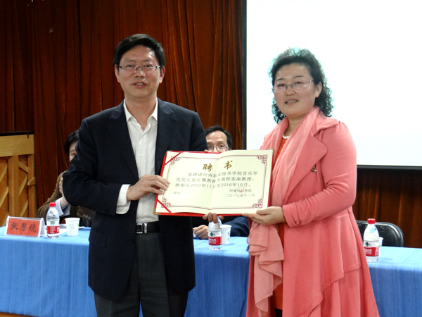 仪式结束后,雷红薇教授为艺术学院师生作了以《中原音乐文化艺术传播研究》为题的学术报告,报告围绕着中原音乐艺术文化的历史、种类及其传播等展开了论述,报告会图文并茂、视听兼备、形象生动,雷红薇教授精彩的讲授和声情并茂的范唱,赢得了与会师生的阵阵掌声。