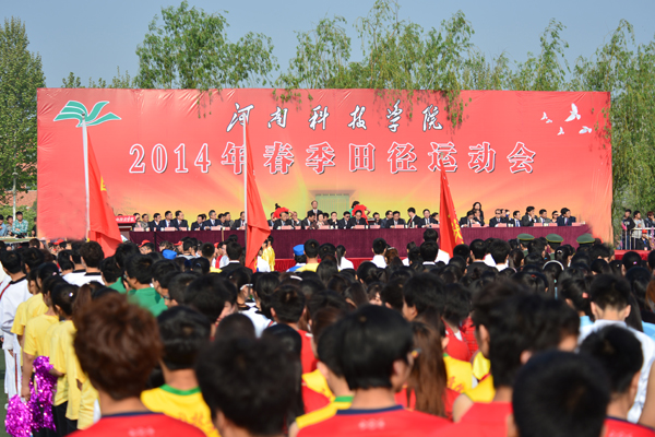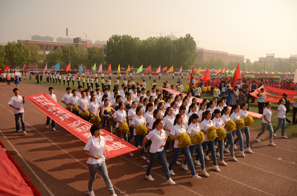 4月14日上午,我校2014年春季田径运动会开幕式在东操场隆重举行。校领导牛书成、王清连、张玉珍、刘兴友、窦玉玺、冯启高、王舜书、苗双虎、宋亚伟出席开幕式,相关职能部门、各学院党政负责人,裁判员,运动员,师生代表等4000余人参加了开幕式。
