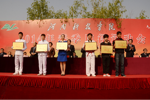 校党委副书记张玉珍宣布入场式列队表演获奖单位名单,新科学院、园艺园林学院、服装学院、生命科技学院、体育学院、艺术学院分获学生代表队前六名。校领导向获奖单位颁奖。