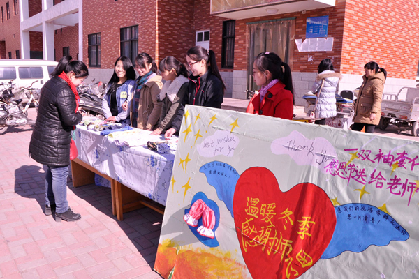 服装学院学生将平时上课用的实验材料的边角料收集起来,利用课余时间在实验室制作完成了三百余副“温暖袖套”,并用卡片写下制作者对老师的美好祝福,通过展台和分批赠送的方式向全校教职工免费赠送,传递冬日的温暖和感恩之情,受到了广大教师的欢迎。
