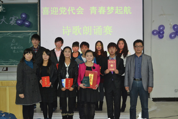 在我校第四次党代会即将召开之际,11月15日晚,信息工程学院“喜迎党代会,青春梦起航”2013年诗歌朗诵赛在9#合二教室拉开帷幕,信息工程学院团委老师和学生会主席团干部担任评委。