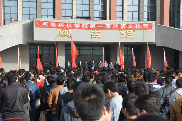 本届外语文化节由教务处主办,宣传部、校团委、学生处、图书馆等职能部门协办,外国语学院承办。文化节以“外语拓宽视野•文化点亮生活”为主题,将从11月16日开始,持续到12月底。期间,将举办包括 “单词英雄会”启动仪式、英汉翻译竞赛、“河南科技学院杯”英语演讲比赛、学术报告会、英语文化沙龙、新年晚会等系列相关活动。