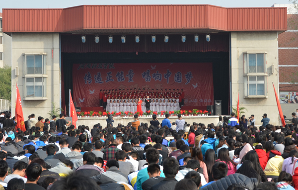 为进一步加强爱国主义教育,充分展现当代青年大学生朝气蓬勃、团结向上的精神风貌,丰富活跃校园文化生活,11月3日下午,由党委宣传部、党委学工部、校团委联合举办的“传递正能量 唱响中国梦”合唱比赛在西区操场举行。相关职能部门负责人、各学院党委书记、副书记、辅导员和2013级新生一起观看了比赛。