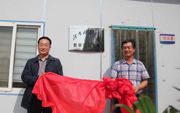 副校长王文鹏简要介绍了我校的历史沿革以及在学科建设、人才培养、科技创新、社会服务和校企合作等方面所取得的成绩,他表示教学实习基地的建立将提升我校学生的实践能力和企业的创新发展实力,标志着我校园艺园林学院与长垣县嘉祥种植农民专业合作社在教学、科研开发方面的校企合作进入了实质性的阶段。在热烈的掌声中,副校长王文鹏、长垣县领导共同为河南科技学院教学实习基地揭牌。