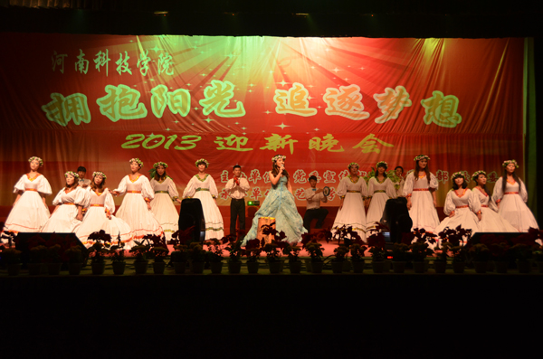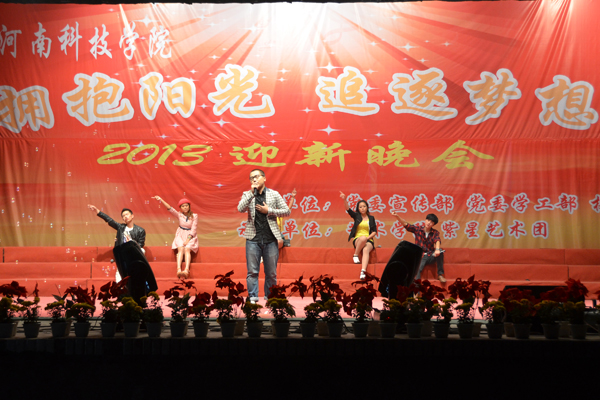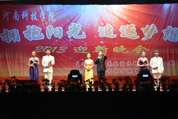 为展现我校大学生良好的精神风貌,丰富校园文化生活,10月11日晚,由校党委宣传部、党委学工部、校团委主办,艺术学院承办的,以“拥抱阳光追逐梦想”为主题的2013迎新晚会在西操场大舞台隆重举行。校党委副书记张玉珍、副校长窦玉玺出席了迎新晚会,各相关职能部门和学院负责人及现场8000余名新生一起观看了演出。