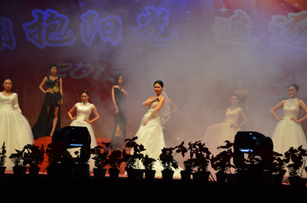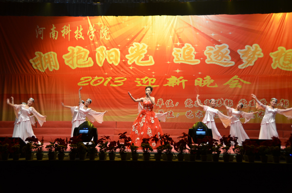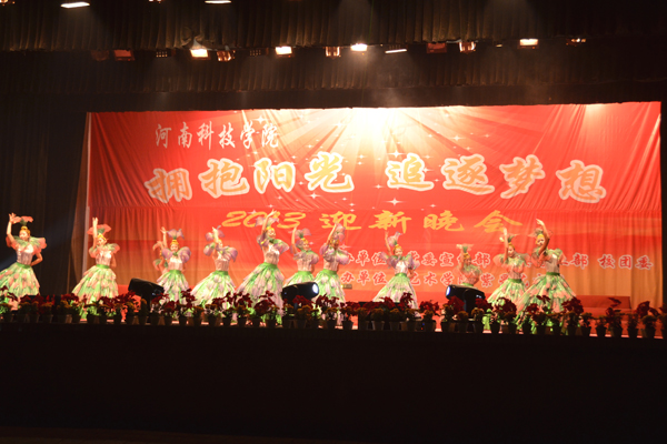 演出现场乐声飘扬、掌声雷动、热闹非凡,师生们沉浸在一片欢乐喜悦的海洋中。在一支优美的舞蹈《拥抱阳光》中,晚会拉开了帷幕。男声独唱《跟你走》、诗歌朗诵《追逐梦想》、流行歌曲串烧等形式多样的节目,精彩纷呈、高潮迭起,赢得了观众热烈的掌声。曾荣获河南省“洛神杯”第六届专业舞蹈大赛一等奖的作品《俺家老爷子》,用充满爆发力的肢体语言和丰富的情绪演绎了伟岸如山的父爱,表达了对父母的感恩之心;歌曲《竹颂》借竹子“刚正不阿、高风亮节”的形象赞扬了廉政文化,并向我校辛勤工作、甘于奉献的党员干部和老师致以崇高的敬意;时装表演《霓裳梦·学子梦》展示了服装学院广大师生在中国时装设计大赛、模特大赛等国内外专业赛事中的优秀作品,一件件精美绝伦的服装,秀出了他们绚丽夺目的青春活力。伴随着欢快激昂的歌曲《我相信》,晚会画上了圆满的句号。
