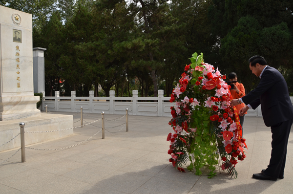 党委书记牛书成代表学校向焦裕禄烈士敬献花篮