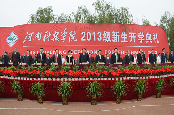 天朗气清,彩旗飘扬,9月16日上午9时,我校2013级新生开学典礼在东操场隆重举行。校领导牛书成、王清连、张玉珍、王文鹏、刘兴友、窦玉玺、冯启高、王舜书、苗双虎、宋亚伟出席开学典礼,各相关职能部门负责人、各学院党政负责人在主席台就座,各学院辅导员及2013级9800余名新生参加了开学典礼。