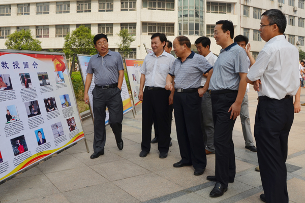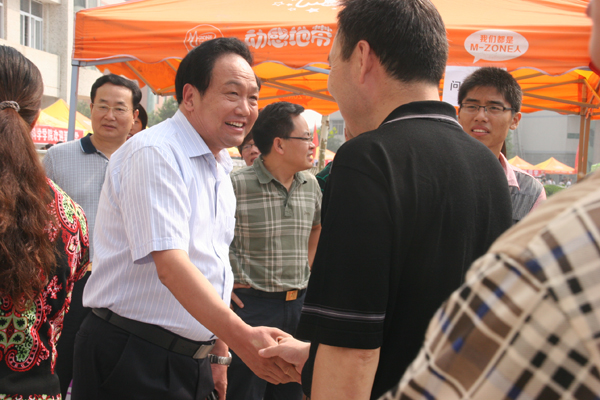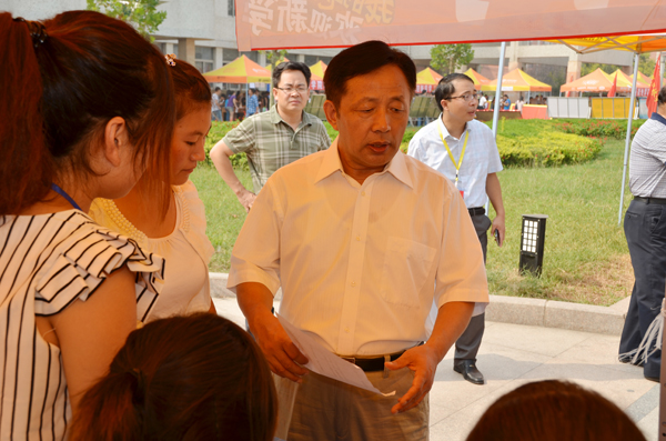 10点左右,校领导牛书成、王清连、张玉珍、王文鹏、刘兴友、窦玉玺、冯启高、王舜书、苗双虎、宋亚伟一行莅临各学院迎新现场,看望和慰问工作在一线的迎新师生,详细了解各学院新生的报到状况,并深入学生宿舍、开水房等地查看新生入住情况。在艺术学院新生报到处,当校领导得知有两位78岁的老人亲自来送自己的孙女报到时,叮嘱工作人员一定要让两位老人休息好,并建议要给孩子适当的独立空间,锻炼他们尽快成长。
