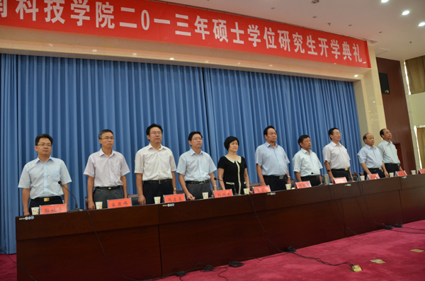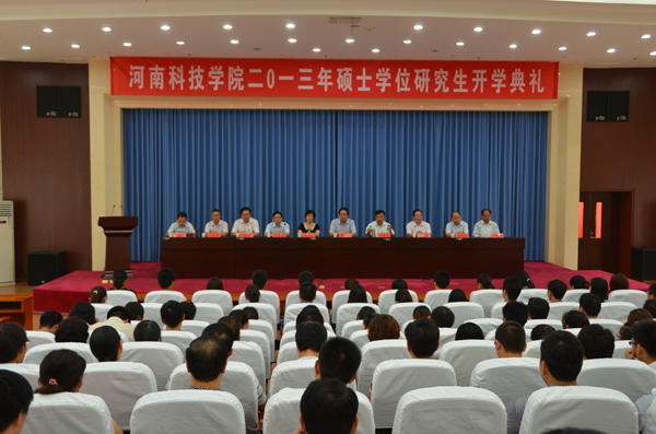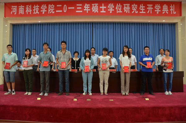 开学典礼在雄壮的国歌和激昂的校歌声中开始。副校长刘兴友首先宣读了《河南科技学院关于颁发2013级优秀研究生新生奖学金的决定》。伴随着欢快的音乐和热烈的掌声,校领导为在2013年研究生入学考试初试中取得优异成绩的同学颁发了优秀研究生新生奖学金荣誉证书。