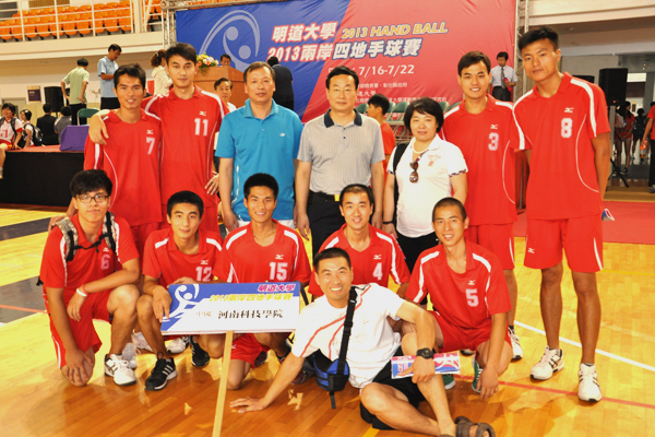 受台湾明道大学邀请,7月15日—7月22日,以副校长王文鹏为团长的我校男子大学生手球队一行13人,赴台湾参加了2013年两岸四地大学生手球比赛,并喜获亚军。