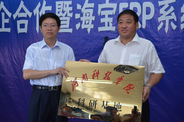 副校长刘兴友为海宝集团成为我校科研基地授牌