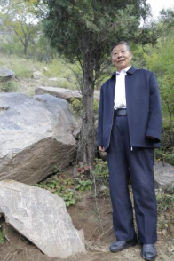 武庆福指着上面的山坡,指点着隐约可见的柏树轮廓。他说山坡比较陡,当年的山路更加荒芜了,可以顺着现在的盘山公路上去……一阵开心的道谢后,大家开车上山。进入宝泉景区不久,一处被公路冲开的山包上,一棵柏树似乎在给与张庆连最清晰的提醒:就在这里!