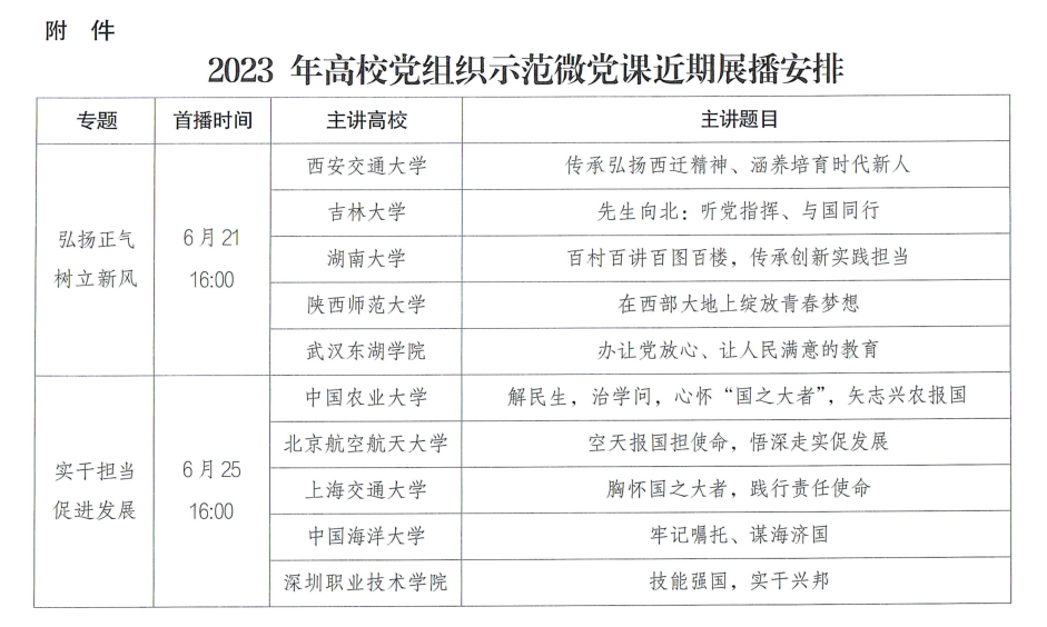 1.强化统筹。各二级党组织要高度重视,紧密结合主题教育,整体考虑,联动实施。组织收看微党课不限于党员师生干部,各党支部、团支部等,组织开展示范微党课学习分享促实干活动,将学习收看示范微党课成为引导党员干部和广大师生深刻思考“教育强国,高校何为”、激发使命担当的重要方式。