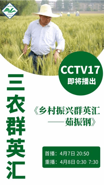 今天(4月7日)晚8:50,中央电视台农业农村频道(CCTV17)将播出《乡村振兴群英汇——茹振钢》,欢迎广大师生届时收看。