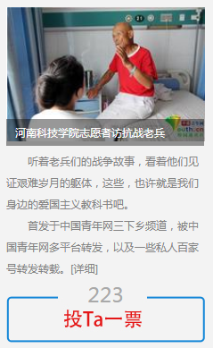3.《河南科技学院志愿者访抗战老兵》(搜索关键词:河南科技学院)
