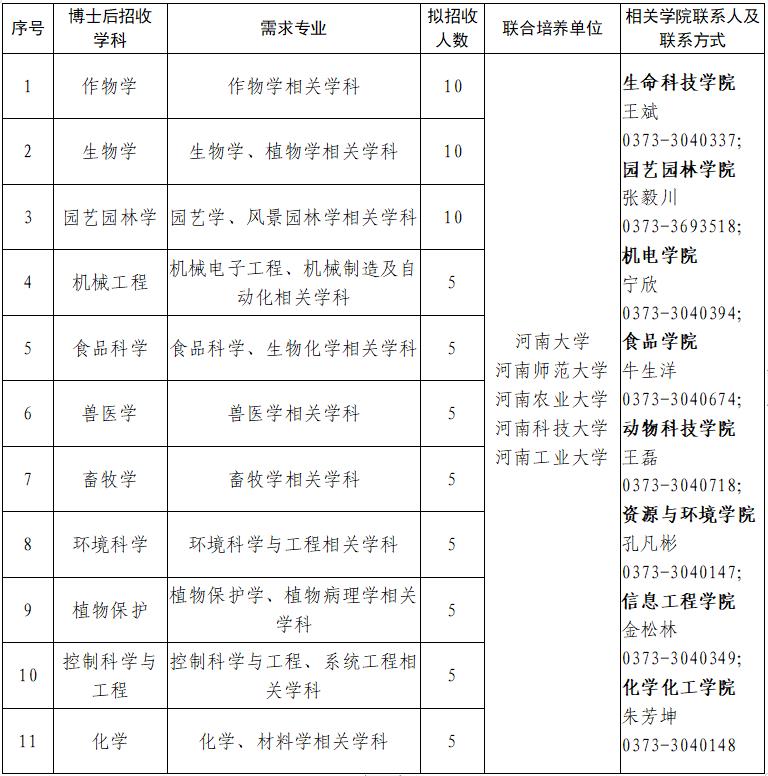 根据《河南省博士后工作管理规定》(豫人社规〔2020〕2号)文件精神和博士后联合培养合作单位有关规定,结合学校实际,经研究决定,面向海内外招收博士后研究人员到我校博士后创新实践基地全职从事科研工作,现将本次博士后招收相关事宜通知如下: