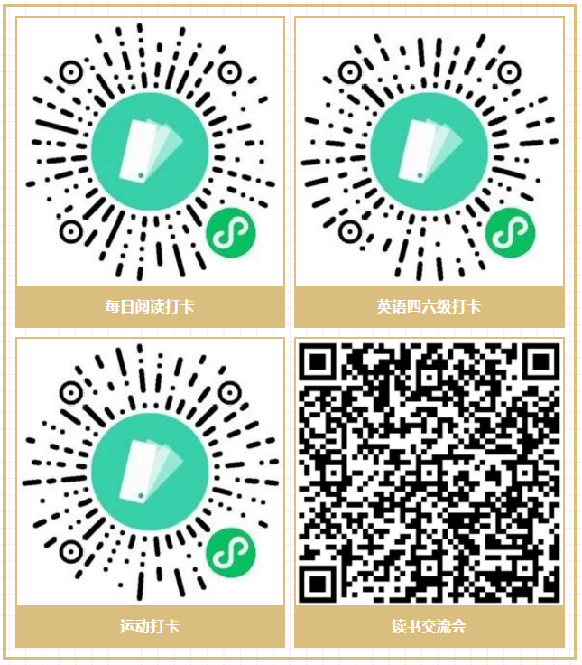本次打卡活动分为线上和线下两种,线上活动主要包括“每日阅读打卡”“英语四六级打卡”“运动打卡”,线下活动是“读书交流会”。