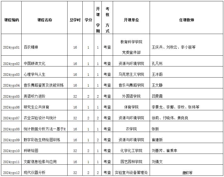 为进一步完善我校研究生课程体系,提高研究生培养质量,研究生处开展了2024年研究生公共选修课遴选活动。经个人申报,学院推荐,研究生处组织评审,确定了我校2024年研究生公共选修课名单,现予公布。