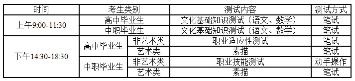 说明:各项测试具体时间以准考证打印时间为准。
