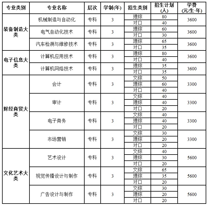 (2)高中毕业生文、理科分开录取,中职毕业生分专业类别录取;