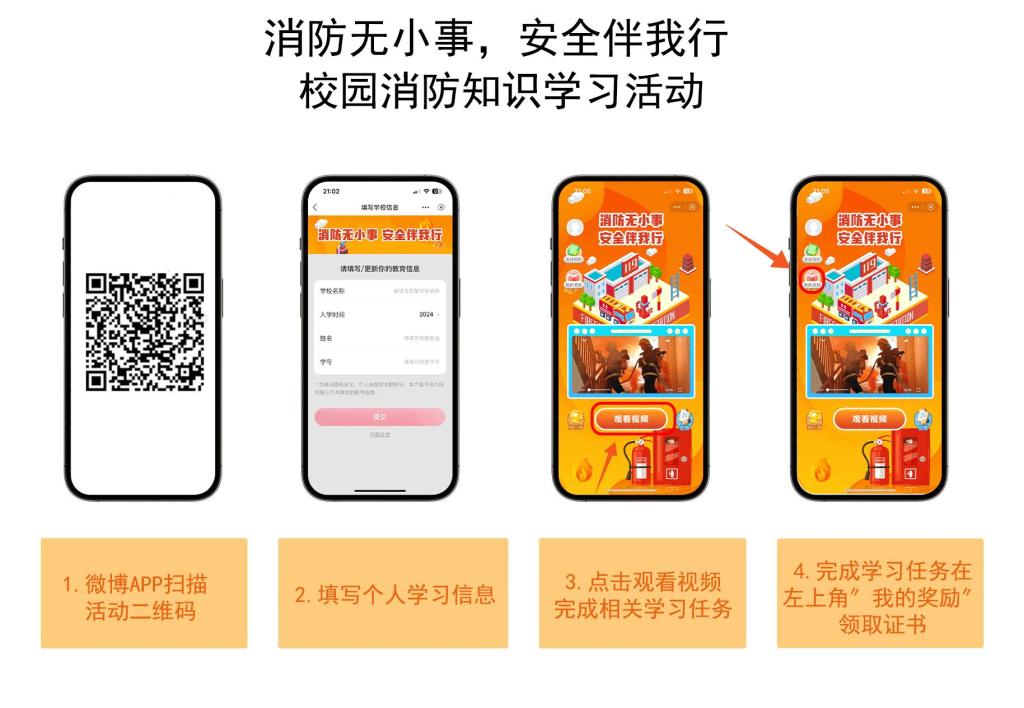 2.消防知识答题活动参与答题时间为11月28日-11月30日,任选一天参与相关内容,请务必在课程开始第一天按照“附件2”中流程,扫码参与答题并获取证书。