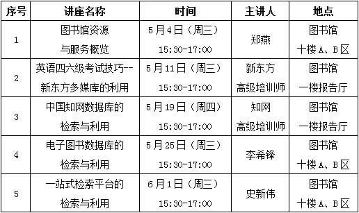 为帮助全校读者充分利用图书馆的各类数字资源,更好地为教学科研服务,图书馆定于2016年5月4日起开展图书馆资源与服务系列讲座,具体安排如下: