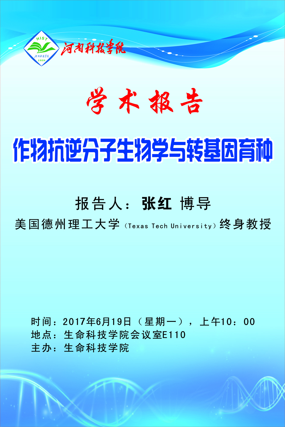 张红,男,博士,教授,博士生导师,美国德州理工大学(TexasTech University)植物分子生物学与植物生物技术终身教授。密歇根州立大学博士学位(Michigan State University, 1983-1989年),哈佛大学医学院(Harvard Medical School)博士后(1990-1994)。1995年,在德州理工大学成立研究组,主要从事棉花、花生等作物耐非生物逆境胁迫研究。张红教授先后在Science, Nucleic Acids Res., Plant cell, PlantPhysiol., Plant Journal等国际顶级学术刊物发表研究论文数十篇。