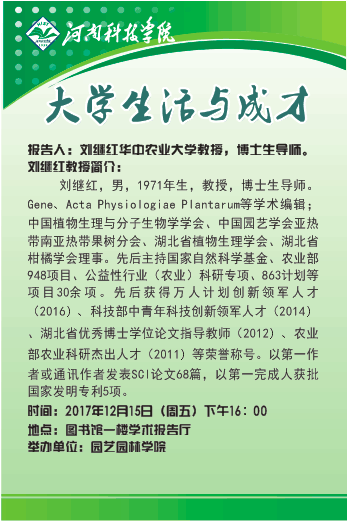 报告人:刘继红华中农业大学教授,博士生导师。