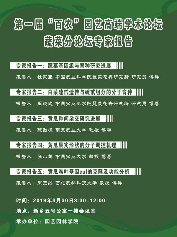 第一届“百农”园艺高端学术论坛蔬菜分论坛专家报告