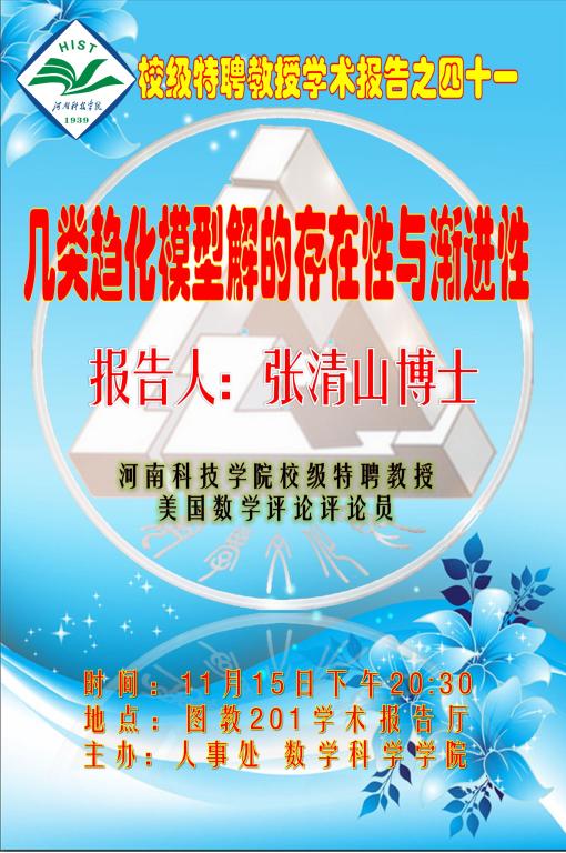 报告内容简介:主要讲述生物数学中几类描述趋化现象的偏微分方程模型解的存在性和渐近性态。