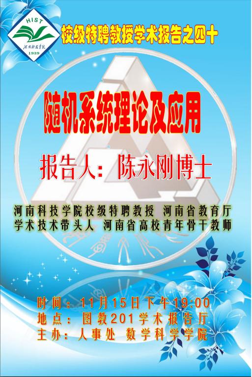 报告摘要:随机现象广泛存在于自然界和实际动态系统中,比如工程系统、生态系统、社会经济系统、神经动力系统等。随机现象的存在将会使得系统的性能发生较大的退化,甚至会引起不稳定性。报告主要介绍了随机扰动影响下动态系统的相关理论和应用。作为随机系统的一个重要应用,报告也着重介绍了过程噪声和测量噪声影响下的卡尔曼滤波算法和具体应用。除此之外,报告也介绍了报告人在英国布鲁内尔大学访问时的一些相关情况。