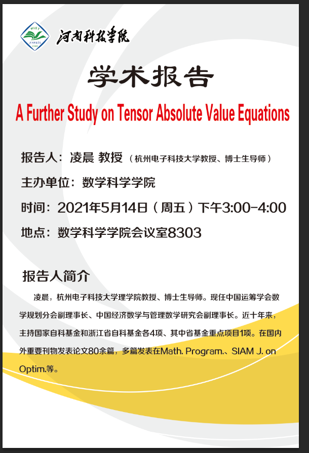 报告题目:A Further Study on Tensor Absolute Value Equations