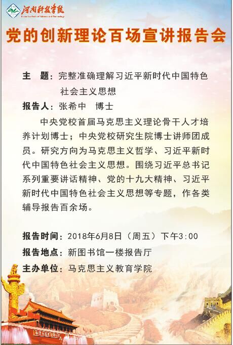 党的创新理论理百场宣讲报告会——完整准确理解习近平新时代中国特色社会主义思想