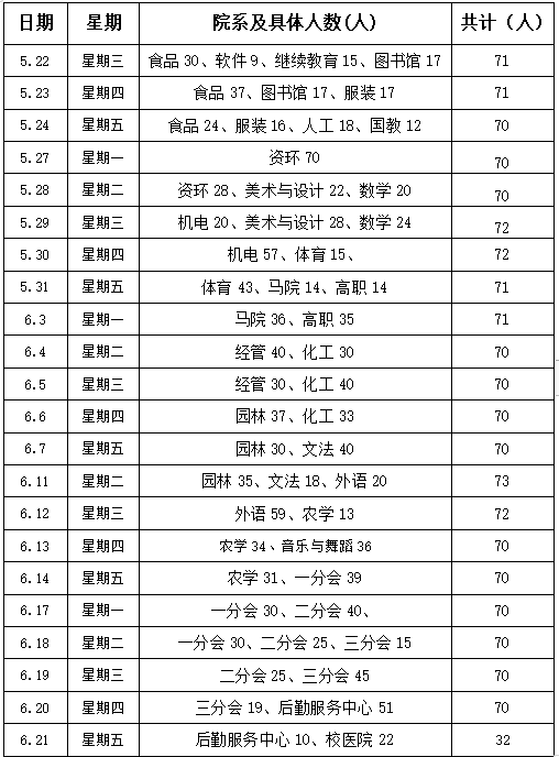(9)因网络中心和校医院在筹备线上预约系统,投入使用前先按下表日期体检,涉及个别院系线上预约将会单独联系。