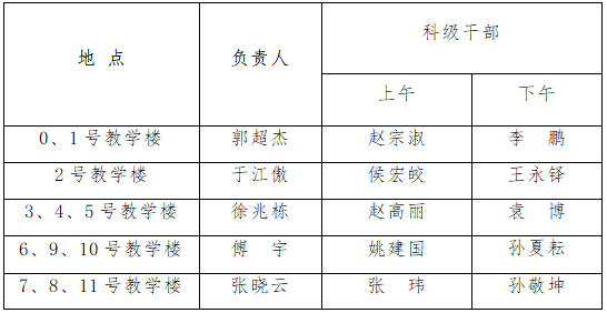 2.每人随机抽查2个班学生的到课情况。上课后无异常情况,即可返回办公室。